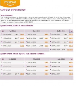 il est en est de même dans une résidence au cap d’agde avec des location studio 4 personnes à moins de 150 euros en mai (au lieu de 240) et avec des prix en juillet interessants : 504 et 540 euros les 2 premieres semaines (au lieu de 720)..